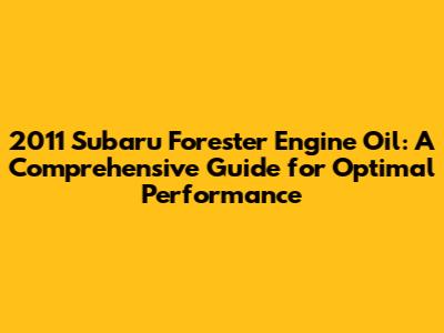 Hey guys! So, you're here because you're looking for the lowdown on engine oil for your trusty 2011 Subaru Forester, right? Well, you've come to the right place. Keeping your engine happy and healthy is super important, and the right oil is a key part of that. This guide will cover everything you need to know about the 2011 Subaru Forester engine oil, from the right type to how often you should change it, and even some helpful tips and tricks. Let's dive in and get your Forester running like a champ!