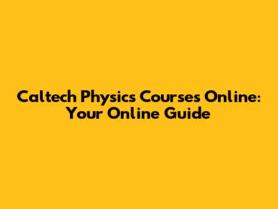Are you looking to deepen your understanding of physics from one of the world's leading institutions? If so, you're probably curious about Caltech physics courses online. Caltech, renowned for its rigorous science and engineering programs, offers a variety of ways to access its physics content online, whether you're a high school student, an undergraduate, or simply a lifelong learner. Let's dive into what's available and how you can make the most of it. Delving into the world of Caltech physics courses online opens doors to a wealth of knowledge and expertise. Whether you're a student seeking to supplement your classroom learning, a professional looking to expand your skill set, or simply a curious mind eager to explore the fundamental laws of the universe, Caltech's online offerings provide a unique opportunity to engage with cutting-edge research and renowned faculty. Navigating the landscape of online learning can be daunting, but understanding the available resources and how to leverage them effectively can significantly enhance your learning experience. From introductory lectures to advanced seminars, Caltech physics courses online cater to a diverse range of interests and skill levels. The flexibility of online learning allows you to study at your own pace and on your own schedule, making it an ideal option for individuals with busy lives or those who prefer a self-directed learning approach. The interactive nature of many online courses fosters collaboration and engagement, allowing you to connect with fellow learners from around the world and participate in discussions that deepen your understanding of the material. Moreover, access to Caltech's renowned faculty and researchers provides invaluable insights into the latest advancements in physics and the challenges that lie ahead. With its commitment to excellence and innovation, Caltech continues to push the boundaries of scientific knowledge and inspire the next generation of physicists. By taking advantage of Caltech physics courses online, you can tap into this rich intellectual environment and embark on a journey of discovery that will expand your horizons and ignite your passion for physics.