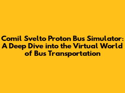 Hey guys, have you ever dreamed of cruising through city streets or navigating scenic routes from the driver's seat of a sleek bus? Well, look no further, because the Comil Svelto Proton Bus Simulator offers an incredibly realistic and immersive experience that lets you do just that! This simulator isn't just a game; it's a meticulously crafted virtual world that captures the essence of bus driving, from the intricate details of the vehicles to the challenges of real-world routes. It's like having your own personal bus garage and the open road at your fingertips, and the fun doesn't stop there.