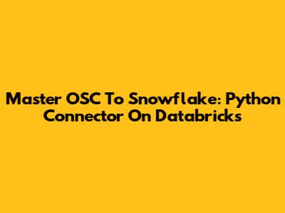 Master OSC To Snowflake: Python Connector On Databricks