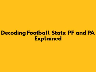 The Importance of PF and PA in Football Analysis