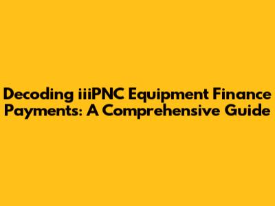 Hey guys! Ever found yourself scratching your head when dealing with iiiPNC equipment finance payments? You're not alone! Navigating the world of equipment financing can feel like trying to decipher a secret code. But don't worry, we're here to break it all down for you. This guide is your ultimate resource to understand iiiPNC equipment finance payments, ensuring you're always in the know and can manage your finances like a pro.