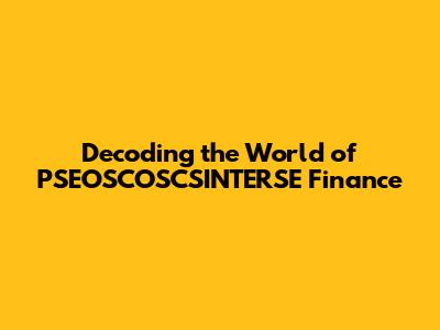 The Future of PSEOSCOSCSINTERSE Finance