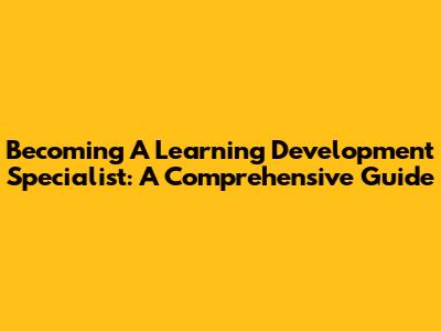 Becoming A Learning Development Specialist: A Comprehensive Guide