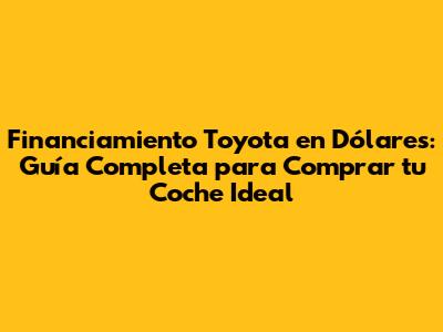 Financiamiento Toyota En Dólares: Guía Completa