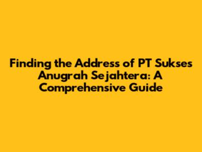 Hey guys! Are you trying to find the address of PT Sukses Anugrah Sejahtera? You're in the right place! This guide is designed to help you navigate the process of locating their address, whether you're a potential client, a business partner, or just curious. We'll break down the steps, explore the resources available, and offer some tips to make your search as smooth as possible. Finding the right address is crucial for a variety of reasons, from sending important documents to visiting their office. Let's dive in and get you the information you need! We will cover everything you need to know about finding this address, including online resources, and what to do if you can't find it immediately. So, let's get started. Ensuring you have the correct address can save you time, resources, and potential frustration. That's why we're here to help you get it right the first time. The information provided here is intended for informational purposes and to help you locate the company's address effectively.