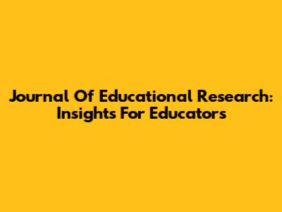 Journal Of Educational Research: Insights For Educators