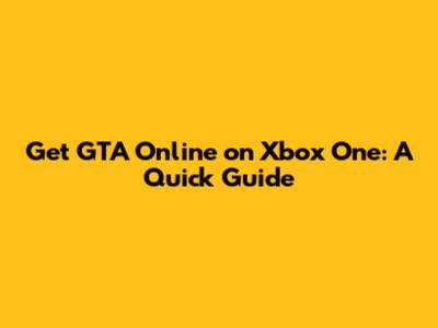 Get GTA Online On Xbox One: A Quick Guide