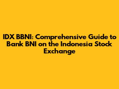 IDX BBNI: Comprehensive Guide To Bank BNI On The Indonesia Stock Exchange