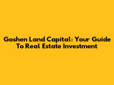 Goshen Land Capital: Your Guide To Real Estate Investment