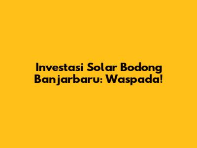 Investasi Solar Bodong Di Banjarbaru: Waspada!