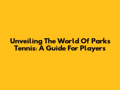 Unveiling The World Of Parks Tennis: A Guide For Players