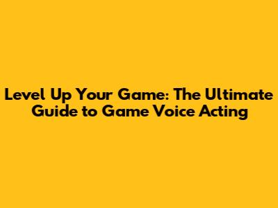 What is Game Voice Acting, Anyway?