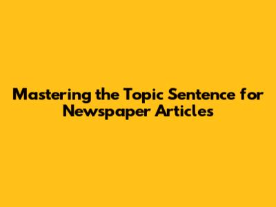 Mastering The Topic Sentence For Newspaper Articles