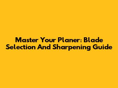 Master Your Planer: Blade Selection And Sharpening Guide