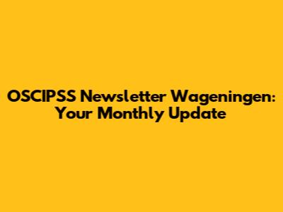 OSCIPSS Newsletter Wageningen: Your Monthly Update