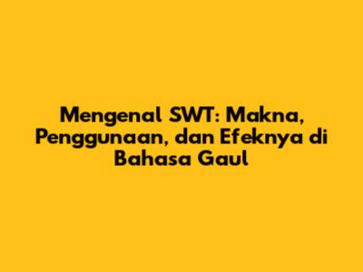 Guys, pernah gak sih kalian scroll media sosial atau baca chat teman dan nemu singkatan "SWT"? Mungkin sebagian dari kalian udah gak asing lagi, tapi buat yang baru denger atau masih bingung, sini merapat! Kita kupas tuntas arti kata SWT dalam bahasa gaul, gimana penggunaannya, dan kenapa sih singkatan ini bisa populer banget.
