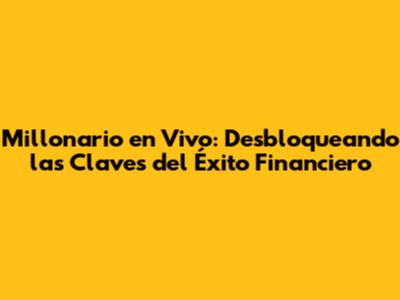 Millonario En Vivo: Tu Guía Definitiva Para El Éxito Financiero