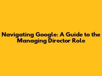 Understanding the role of a Managing Director at Google is crucial for anyone aspiring to leadership within the tech giant or seeking to understand its organizational structure. These individuals are pivotal in steering Google's various divisions, driving innovation, and ensuring the company remains competitive in the ever-evolving tech landscape. This article delves into the responsibilities, qualifications, and impact of a Managing Director at Google, offering a comprehensive overview of this vital position.