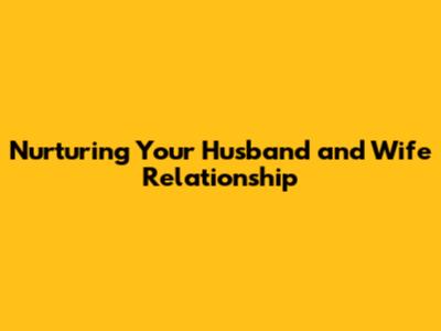 Nurturing Your Husband And Wife Relationship