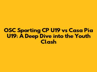 Alright, football fanatics! Let's dive deep into a thrilling matchup: OSC Sporting CP U19 vs Casa Pia U19. This isn't just any game, guys; it's a battle of the rising stars, a showcase of future talent, and a testament to the beautiful game's enduring appeal. We're talking about the U19 level, where raw potential meets tactical development, and where every match is a stepping stone to professional football. In this article, we'll break down everything you need to know about this exciting encounter. From team analysis to potential game strategies, we'll cover it all, ensuring you're well-equipped to appreciate the nuances of the game and maybe even predict the outcome. So, buckle up, grab your snacks, and get ready for a comprehensive look at what promises to be a captivating clash between two ambitious youth squads. We will cover the team's strategies, their strengths, weaknesses, and key players. So, are you ready to learn some insights about this match?