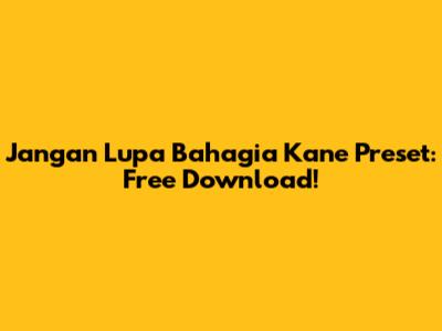 Jangan Lupa Bahagia Kane Preset: Free Download!