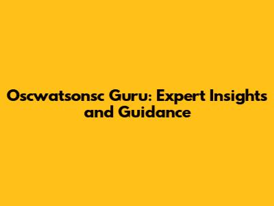 Oscwatsonsc Guru: Expert Insights And Guidance