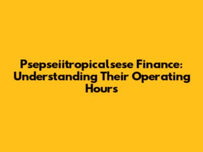Hey guys! Ever found yourself wondering about the operating hours of Psepseiitropicalsese Finance? It's a super common question, and understanding when you can actually get in touch or access their services is crucial, right? Whether you're trying to make a quick transaction, have an urgent query, or just want to plan your visit, knowing their financial clock is key. In this article, we're going to dive deep into what you need to know about Psepseiitropicalsese Finance hours, helping you navigate their schedule like a pro. We'll cover everything from standard business days to any potential holiday closures and how you might be able to get support outside of these times. So, grab a coffee, and let's get this sorted!