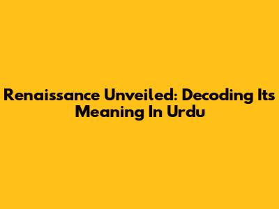 Renaissance Unveiled: Decoding Its Meaning In Urdu