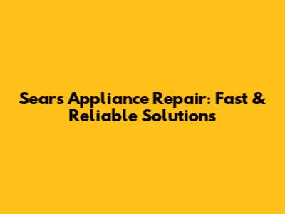 Sears Appliance Repair: Fast & Reliable Solutions