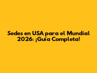 Sedes En USA Para El Mundial 2026: ¡Guía Completa!