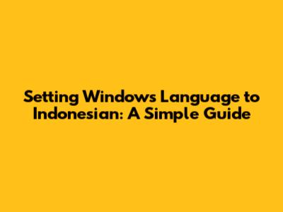 Why Change Your Windows Language to Indonesian?