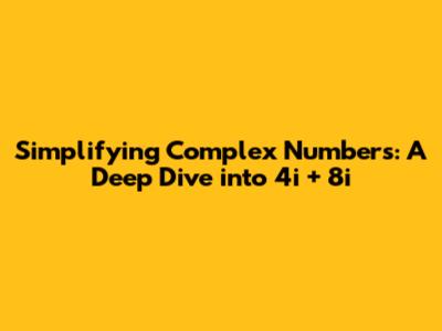 Hey there, math enthusiasts! Today, we're diving headfirst into the fascinating world of complex numbers, specifically tackling the simplification of the expression 4i + 8i. Now, before you start hyperventilating, trust me, it's easier than it looks! We're going to break down this problem step-by-step, making sure you understand not just how to solve it, but also why it works. Get ready to flex those math muscles and unlock a deeper understanding of these intriguing numbers. This article is your guide to mastering complex number simplification, offering clear explanations and practical examples to build your confidence.