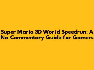 Hey gamers! Are you ready to dive headfirst into the exhilarating world of Super Mario 3D World speedrunning? Forget the chatter, the commentary – this guide is all about the raw, unadulterated thrill of the game. We're talking pure, unadulterated gameplay, where every jump, every power-up, and every warp pipe counts. Whether you're a seasoned speedrunner looking to shave off those precious seconds or a curious newcomer eager to learn the ropes, this is your ultimate no-commentary guide. We'll break down everything, from the basic techniques to the advanced strategies, all designed to help you conquer the game faster than ever. Get ready to experience Super Mario 3D World like never before! Let's get started and crush those speedrun times! Are you ready to dominate those leaderboards? Because we're about to show you how!