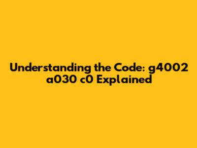Let's dive into the mysterious code g4002 a030 c0. You might be wondering, "What does this even mean?" Well, guys, in the world of manufacturing, electronics, and various industries, seemingly random alphanumeric codes like these are often used to identify specific components, batches, or configurations. So, buckle up, and let’s break it down, even though without specific context, our interpretation will be somewhat general. We will explore the possible meanings and significance of such a code. These codes serve as unique identifiers, helping to track products, manage inventory, and ensure quality control. Understanding these codes is essential for anyone working in related fields, as they provide crucial information about the item they represent. Think of it as a secret language spoken by engineers and technicians, allowing them to communicate efficiently and accurately. The ability to decipher these codes can save time, reduce errors, and improve overall productivity. It's like having a decoder ring for the industrial world, enabling you to unlock valuable information about the products and components you're working with. So, let's embark on this journey together and unravel the mystery behind g4002 a030 c0. By the end of this exploration, you'll have a better understanding of how these codes work and why they are so important.