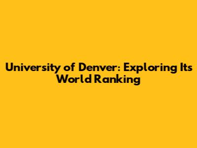 Hey guys! Let's dive into something a lot of you have been asking about: the University of Denver's (DU) world ranking. Whether you're a prospective student, an alum, or just curious, understanding how DU stacks up globally is super interesting. So, let’s get right to it and break down what these rankings mean and how DU fares in the grand scheme of things.