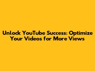 Unlock YouTube Success: Optimize Your Videos For More Views