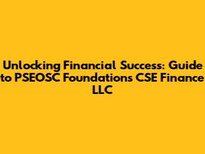 Want to make the most of PSEOSC Foundations CSE Finance LLC or similar financial entities? Here’s a practical guide to help you succeed!