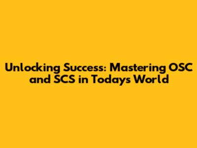 Practical Tips and Tricks: Leveling Up Your OSC and SCS Game