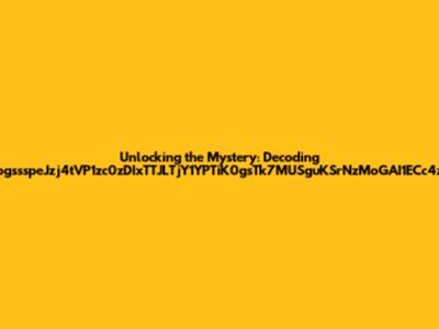 Now, let's tackle the first part: zpgssspeJzj4tVP1zc0zDIxTTJLTjY1YPTiK0gsTk7MUSguKSrNzMoGAI1ECc4zs. This looks like it could be encrypted or encoded text. Encryption is the process of converting readable text into an unreadable format to protect its contents. There are many different types of encryption methods, such as Caesar ciphers, substitution ciphers, or more complex algorithms like AES or RSA. Encoding, on the other hand, is the process of converting data into a different format for easier transmission or storage. Base64 is a common encoding scheme.