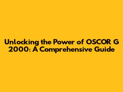 Understanding the OSCOR G 2000: What Is It?