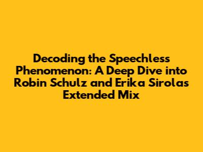 Hey music lovers! Ever gotten completely lost in a track, feeling like the world just fades away? Well, if you're a fan of electronic dance music (EDM) with a touch of soul, chances are you've experienced this with Robin Schulz and Erika Sirola's iconic track, 'Speechless'. This song isn't just a hit; it's a journey. And today, we're going to dive headfirst into the extended mix, exploring what makes it so captivating, how it resonates with listeners, and the genius behind its production. So, grab your headphones, crank up the volume, and let's get started!