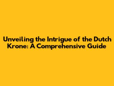 The Genesis of the Dutch Krone: A Historical Perspective