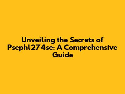 Unveiling The Secrets Of Psephl274se: A Comprehensive Guide