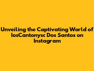 The Allure of IosCantonysc Dos Santos' Instagram: A Visual Journey